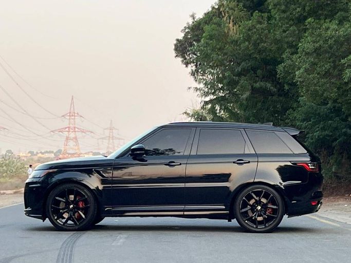 Range Rover Sport SVR 2021: The Powerful All-Wheel Drive Vehicle We present to you the Range Rover Sport SVR 2021, a powerful all-wheel drive vehicle with outstanding performance and a bold design. Specifications: - Model: 2021 - Exterior Color: Black - Interior Color: Black - Mileage: 80,000 km - Options: Full Option, Carbon Fiber Features: - Strong Performance: Equipped with a powerful engine and all-wheel drive system - Daring Exterior Design: Features LED lights and aluminum alloy wheels - Luxurious Interior Cabin: Includes leather seats and an automatic dimming re