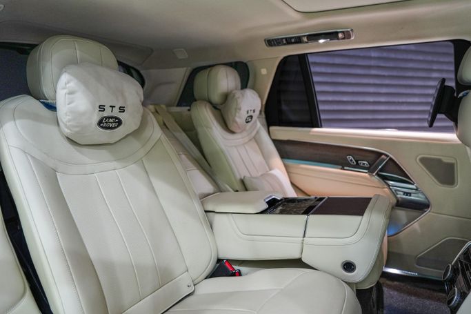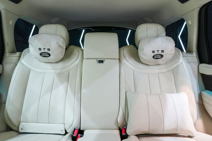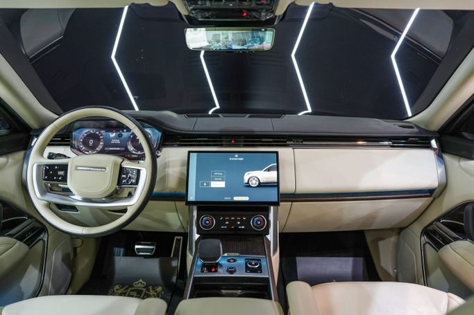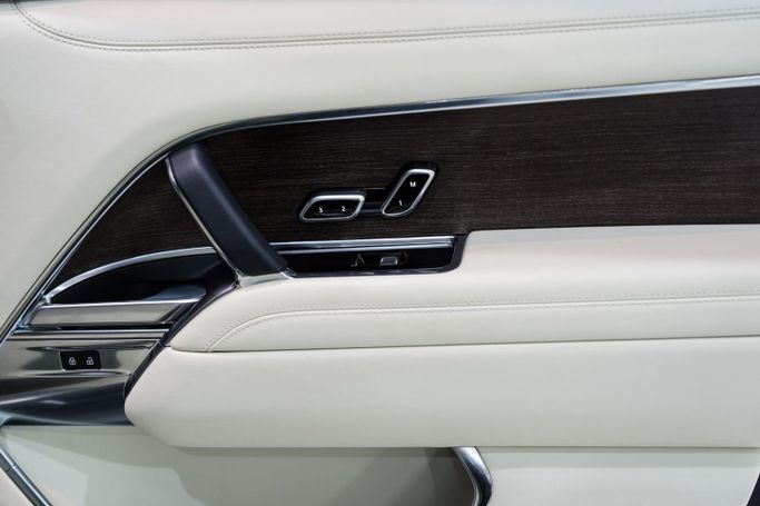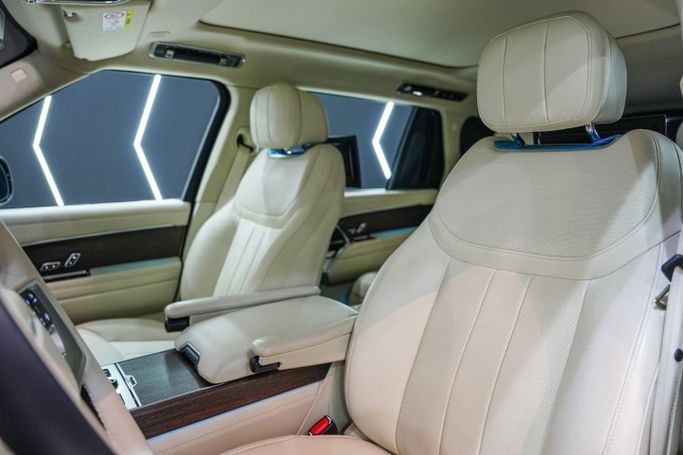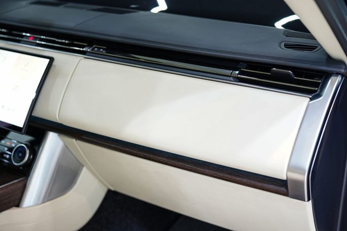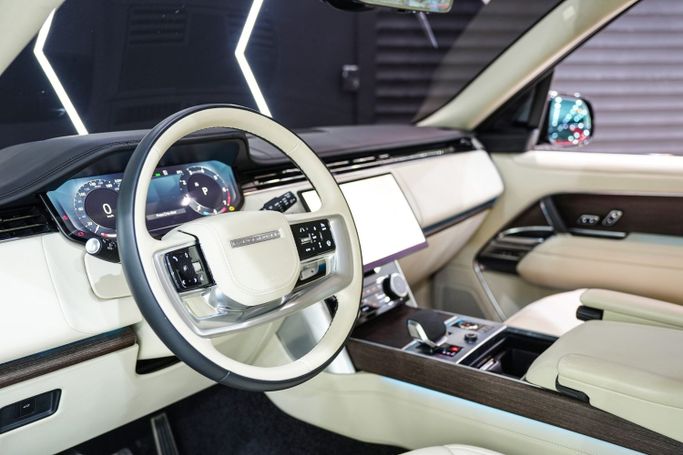 Range Rover Vogue Autobiography LWB P530 GCC Specifications Full Body Paint Protection Film Panoramic Roof Deployable Side Steps Wood Trim Meridian 3D Surround Sound System Rear-Seat Entertainment Rear Armrest Screen Center Console Cooler Box Ventilated and Massage Seats Heated Steering Wheel Ambient Lighting Wireless Charging Tray Apple CarPlay and Android Auto Rear Electric Sunshades Rear Headrest Cushions Head-Up Display Adaptive Cruise Control Front Collision Warning Park Assist Emergency Braking Emergency Lane Keeping 360° Camera 23-Inch Wheels