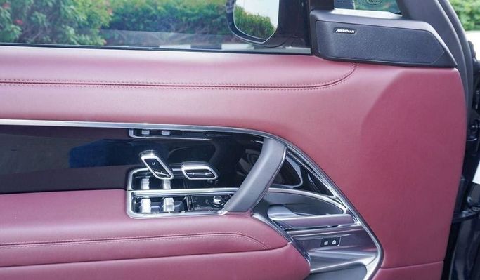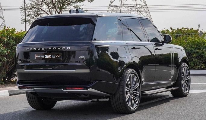 Pre-owned Land Rover Range Rover HSE P530 for sale in Dubai. Black 2024 model, available at Najem Motors FZE. This car has automatic transmission, 8 cylinders, 22″ wheels and red interior. 15,000 km, GCC specs.