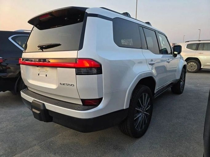 The new Lexus GX III generation is a five-door SUV with all-wheel drive and automatic transmission. Under the hood is a 3.4-liter gasoline engine with a capacity of 354 hp and a torque of about 550 Nm, which ensures confident acceleration and decent dynamics on all roads. The American specification of this variant emphasizes the character and set of options typical of the US market, and the basic 550 modification combines high power with a solid resource. The exterior features a pure white color and an expressive body line, creating a harmonious image of a modern luxury S
