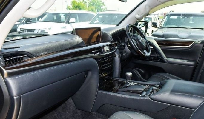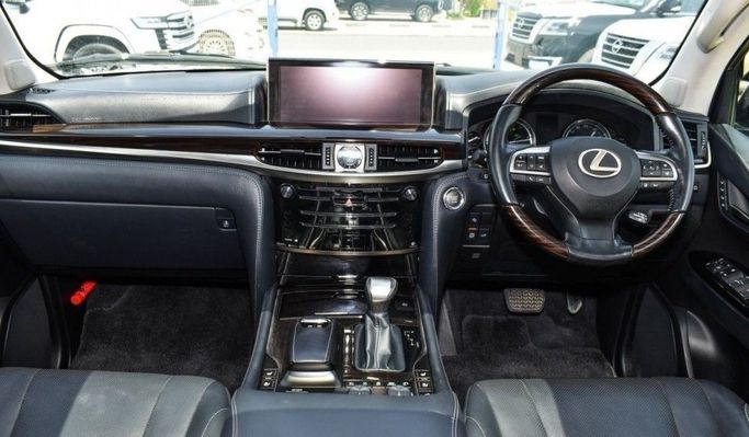 Lexus LX570 2017 Black SUV, Petrol car, Japanese specs, Automatic, 4-door, Right-hand drive Features & Specs Interior Features - Climate Control - Leather Seats Exterior Features - Fog Lights - Tinted Windows - LED Headlights - Roof Rack Safety Features - Adaptive Cruise Control - Power Steering Comfort & Convenience Features - Power Windows - Power Seats - Cruise Control The car features automatic transmission, 8 cylinders, 20" wheels, and a black interior. It has 91,000 km and is built to Japanese specs. The car has 4 doors and ac