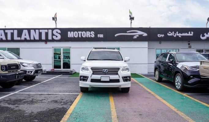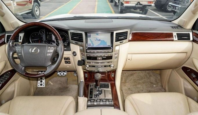 This used 2015 Lexus LX III Facelift is a white, GCC-spec 5-door SUV powered by a 5.7-litre V8 delivering 383 hp and around 570 Nm of torque, paired with an automatic transmission and all-wheel drive. With a single previous owner and 115,174 km on the clock, it blends strong on-road performance with spacious luxury and robust, long-distance capability. The LX’s substantial footprint offers a calm, comfortable ride and a refined cabin that suits daily driving and longer journeys alike, while the combination of V8 power, AWD grip, and durable construction underpins confident