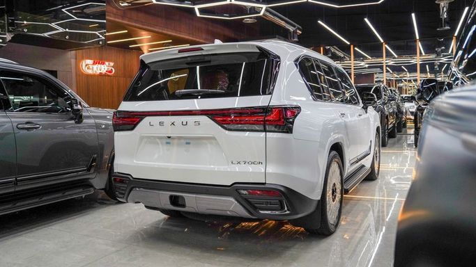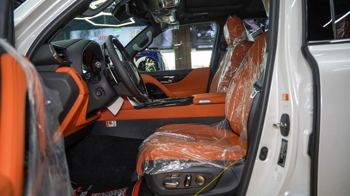 Brand new Lexus LX700h for sale in Dubai. White 2025 model, available at Najem Motors FZE. This car has automatic transmission, 6 cylinder engine, 22″ wheels and brown interior. GCC specs.
