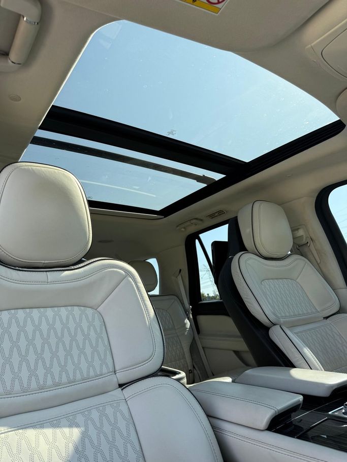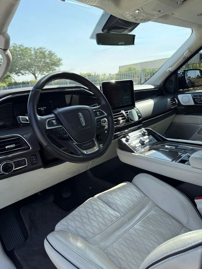 LINCOLN NAVIGATOR PRESIDENTIAL | GCC SPECS | KM: 90,000 | MODEL: 2021 | WARRANTY VALID TILL 9TH OCTOBER 2026 OR 100,000 KMS | UNDER SERVICE CONTRACT. Specifications • Engine: 3.5-litre twin-turbo • Cylinders: 6 cylinders • Power: 450 Horsepower • Transmission: 10-speed automatic, 4WD • Top speed: 185 km/h • Fuel tank capacity: 87L tank • Alloy wheels: 22 inches • Premium leather seats • Ventilated & heated seats • Automatic climate control • High-end audio system • Wi-Fi hotspot • rear-seat entertainment • blind spot monitoring • 360° cameras • USB/charging ports • stabili