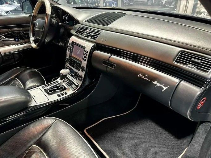MAYBACH S57, SPECIAL EDITION 125, V12, GCC The Edition 125 was created to commemorate the 125th anniversary of the automobile and the parent company, Daimler AG, showcasing Maybach’s bespoke craftsmanship. - Luxurious materials: Black leather upholstery with silver contrast top-stitching. - Signature details: - Glove compartment lid embroidered with the signature of Wilhelm Maybach. - Laser-engraved light motif in the front armrest representing the double-M Maybach logo. - Badge in 925 sterling silver with "MAYBACH MANUFAKTUR" lettering on the upper part o