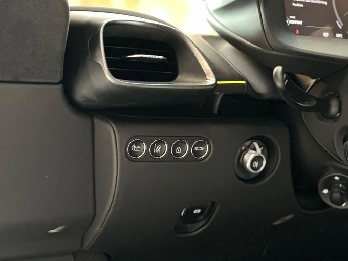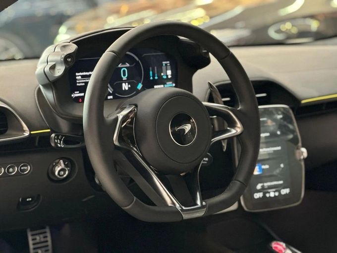 McLaren Artura Vision 2023 V6 cylinder 3.0 Twin Electrically-Actuated Turbochargers For local and Export 0km - Brand New Specifications Vehicle : Passenger/Seating capacity 2 All Wheel Drive Fuel Consumption combined Litre 10-12 / 100 KM Horsepower 680 0-100 Km/H 3.0s Max Torque 720 Nm Battery capacity 7.4kWh Gearbox 8-speed + E-Reverse Seamless shift gearbox Brakes Carbon ceramic brakes with 6 piston aluminium callipers front and 4 piston aluminium callipers rear Black Pack (Gloss black door mirror casings, Gloss black roof and wheels, Stealth exhaust, Gloss black front fe