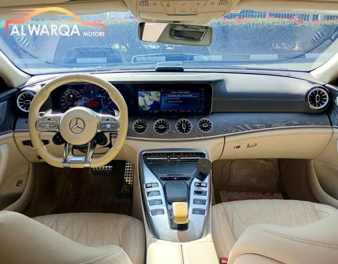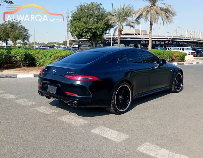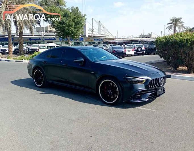 Mercedes-Benz AMG AMG-GT 53 4Matic Plus 2019 This 2019 Mercedes-Benz AMG GT 53 is a facelifted first-gen four-door liftback that blends performance with everyday practicality. Finished in black, it pairs a 3.0-liter turbocharged inline-six with AWD and a smooth automatic transmission to deliver 435 horsepower with confident mid-range torque. The I Facelift brings updated styling cues and a modern cockpit, while the four-door layout offers generous access and cabin space without losing the GT's signature low-slung character. With a single prior owner and 57,579 kilometers, t