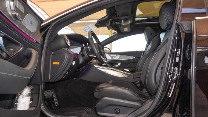 Mercedes-Benz AMG GT 43 4 Matic. Black 2020 model. This car has automatic transmission, 6 cylinders, 20″ wheels and grey interior. 16,711 km, Japanese specs.