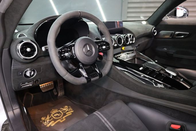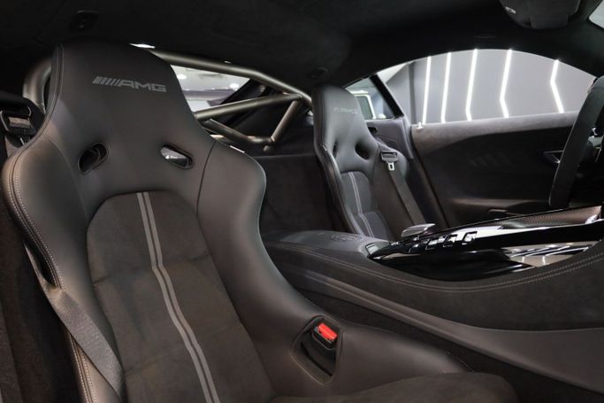 Mercedes-Benz AMG GT Black Series - Carbon Fiber Roof - Carbon Fiber Bonnet - Carbon Fiber Mirrors - Carbon Fiber Front Spoiler - Carbon Fiber Rear Diffuser - Carbon Fiber Rear Wing - Carbon Fiber Side Skirts - Titanium Roll Cage - AMG Performance Exhaust System - AMG Carbon Fiber Bucket Seats - AMG Carbon Fiber Door Sill Covers - Exclusive Black Nappa Leather and Alcantara Interior - AMG Steering Wheel in Microfiber (Dinamica) - Burmester High-End 3D Surround Sound System - Apple CarPlay - Keyless Go Package - AMG Track Package - Camera and Park Assist - Traffic Sign Assi