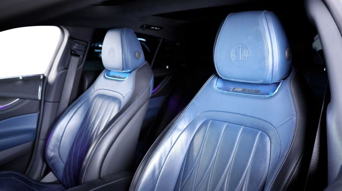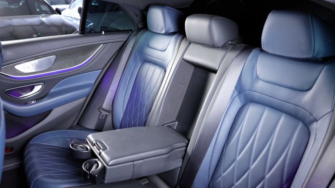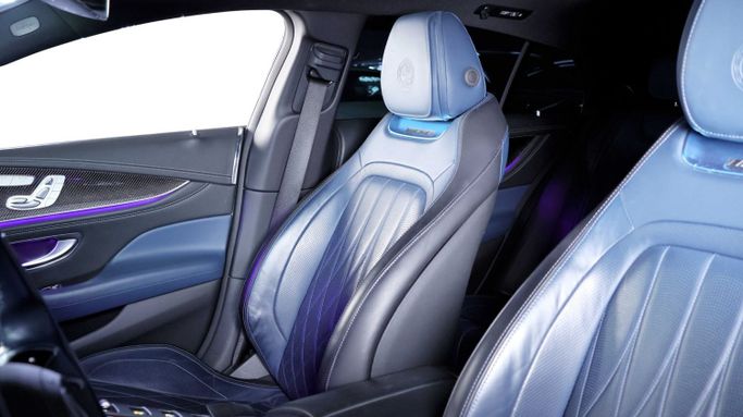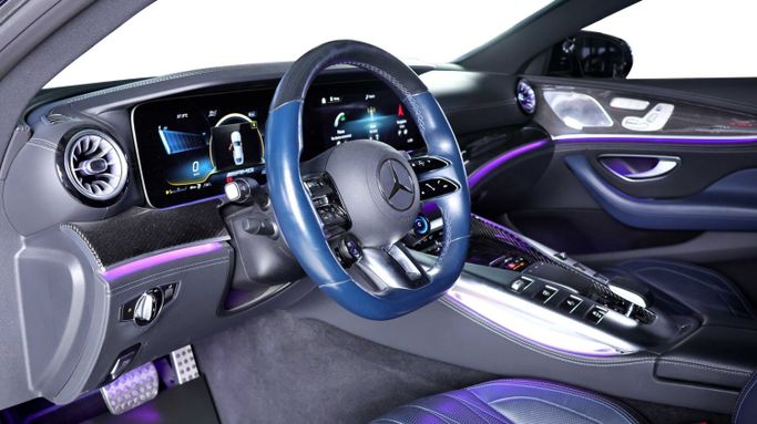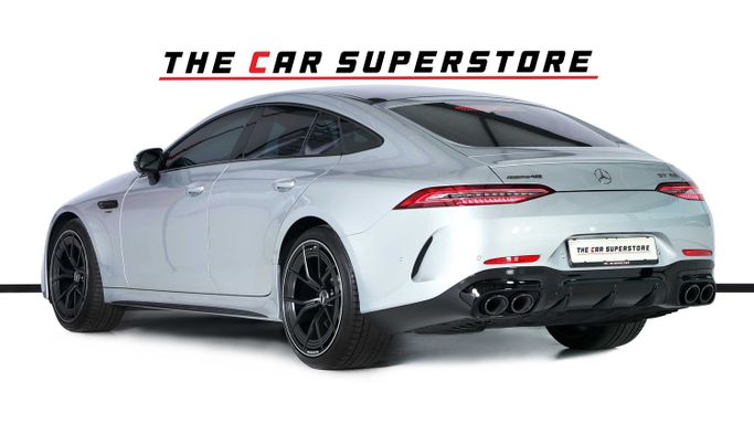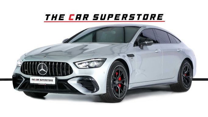 Mercedes Benz MODEL : GT 43 AMG M/Y : 2022 MILEAGE : 53,212 KM EXTERIOR COLOR : Metallic Silver INTERIOR COLOR : Black SPECS : GCC Service Contract Until 2027 Warranty Until 2027 OPTIONS : Burmester High End sound system Premium Metallic Silver Color AMG Night Package Heated and cooled seats Carbon Fiber Interior Trim AMG sport suspension Active Sports Exhaust Adaptive Cruise Control Blind Spot Assist Panoramic Roof Ambient lighting Diamond Cut Stitching Panoramic roof Black/Navy leather seats Apple Carplay /Android Auto Rear active spoiler 21 Inch AMG Design Rims Head up