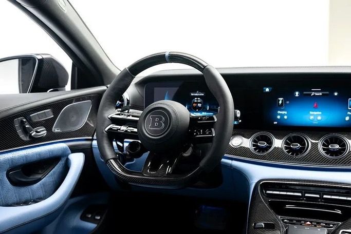 2024 MERCEDES BENZ GT BRABUS 1000 ROCKET | 1 of 25 *BRABUS SPECIAL PAINTING IN OBSIDIAN BLACK EXTERIOR COLOR *BRABUS MASTERPIECE INTERIOR DESIGN IN BLUE/BLACK PREMIUM LEATHER *21/22 inch BRABUS MONOBLOCK P “PLATINUM EDITION” with CARBON AERO-DISCS *BRABUS BRAKE DESIGN *BRABUS SPECIAL PAINTING OF CHROME PARTS *BRABUS CARBON APRON *BRABUS CARBON RAMAIR INTAKE *BRABUS CARBON FRONT SPOILER *BRABUS Carbon ADD-ON PARTS FOR FENDER REWR AXLE *BRABUS CARBON REAR WING BRABUS CARBON RESR DIFFUSOR BRABUS CARBON MIRROR CAPS *KEVLAR COVER FOR WHEEL ARCH PANEL *TRIM ELEMENTS GLAZED I