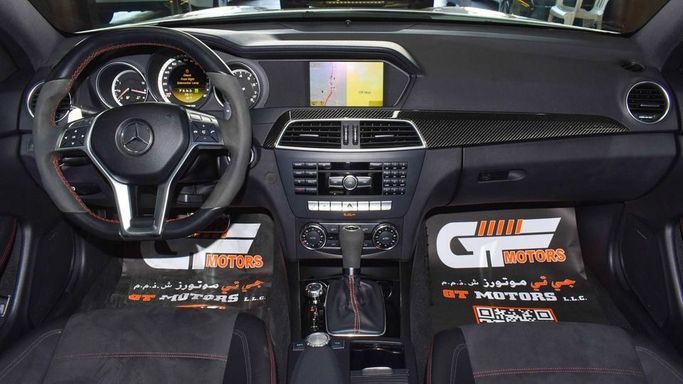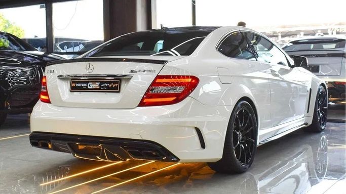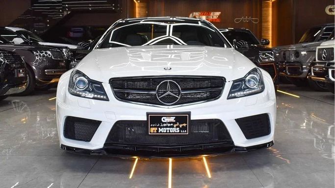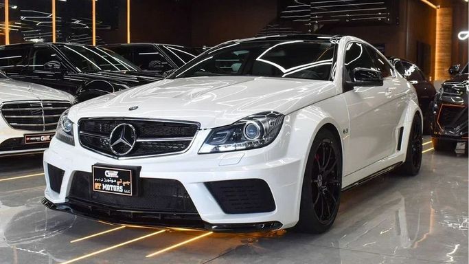 Pre owned Mercedes-Benz C 63 Coupe 1 OF 100 for sale in Dubai by Najem Motors FZE. 8 cylinder engine, white exterior and automatic transmission. Comes with 19″ wheels and black interior. 8,000 kilometers on the odometer, European specs.