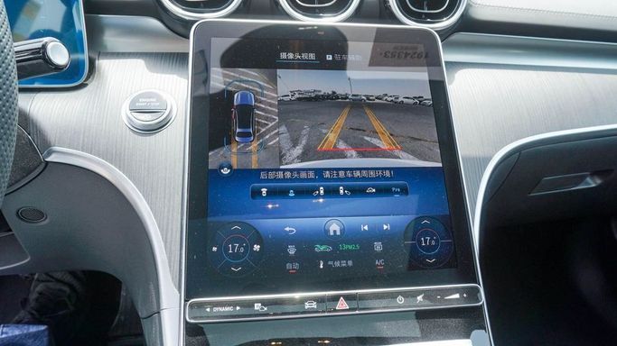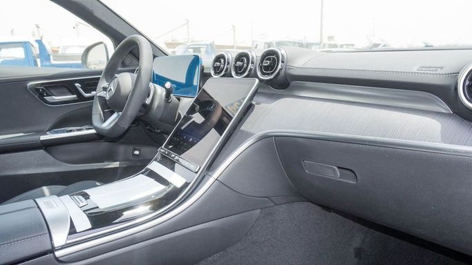 New Mercedes-Benz C 200 L for sale from Najem Motors FZE in Dubai. White 2025 model. The car has automatic gearbox, 4 cylinder engine, 18″ wheels and black interior. Chinese specs.