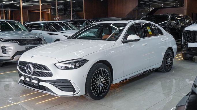 Brand new Mercedes-Benz C 200 L for sale in Dubai. White 2025 model, available at Najem Motors FZE. This car has automatic transmission, 4 cylinder engine, 18″ wheels and tan interior. Chinese specs.