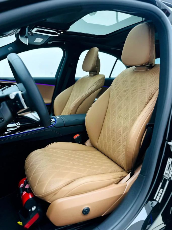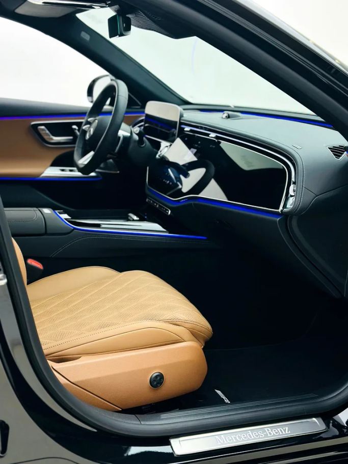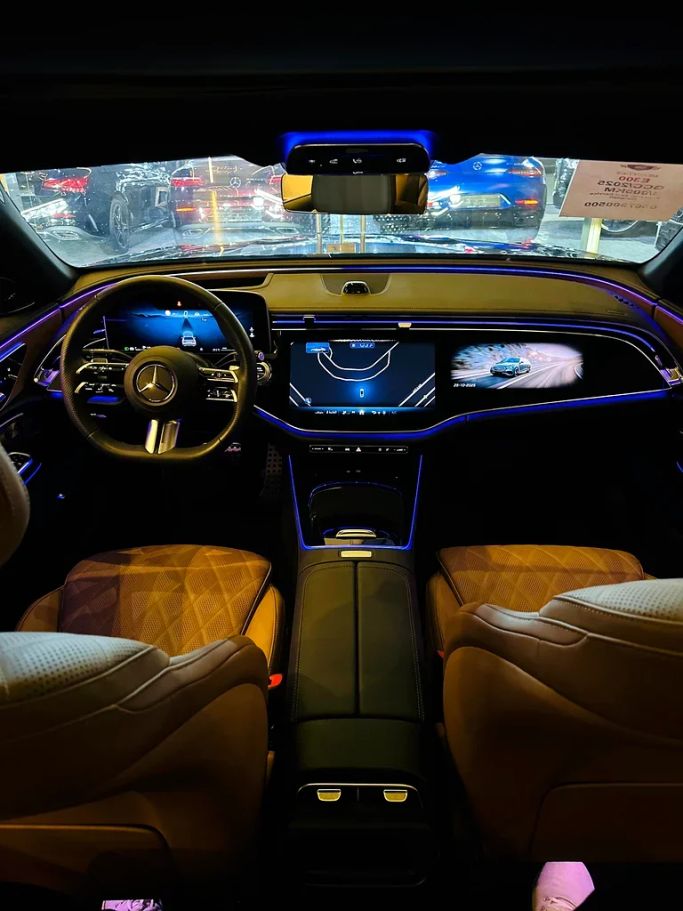 E300 AMG GCC No paint or accidents Gargash warranty and service for 5 years until 2030 or 105,000 km Full option 3 screens Cooling and heating seats Panorama Roof surround system Luxury seats with in-seat audio system Multiple interior colors This 2025 Mercedes-Benz E-Class sedan (VI generation, W214/S214) comes in a deep black finish with a near-new feel, having covered only 2,000 km and with a single previous owner. It is powered by a 2.0-liter turbocharged petrol engine producing 258 horsepower, paired with an automatic transmission and all-wheel drive for composed, conf