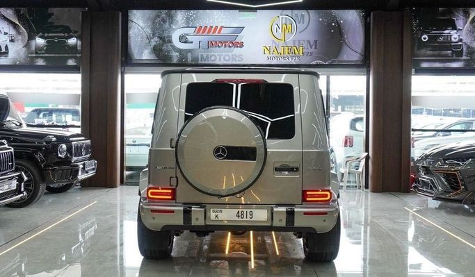 Pre owned Mercedes-Benz G 63 AMG for sale in Dubai by Najem Motors FZE. 8 cylinder engine, gold exterior and automatic transmission. Comes with 22″ wheels and beige interior. 24,000 kilometers on the odometer, European specs.