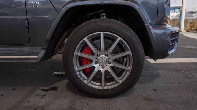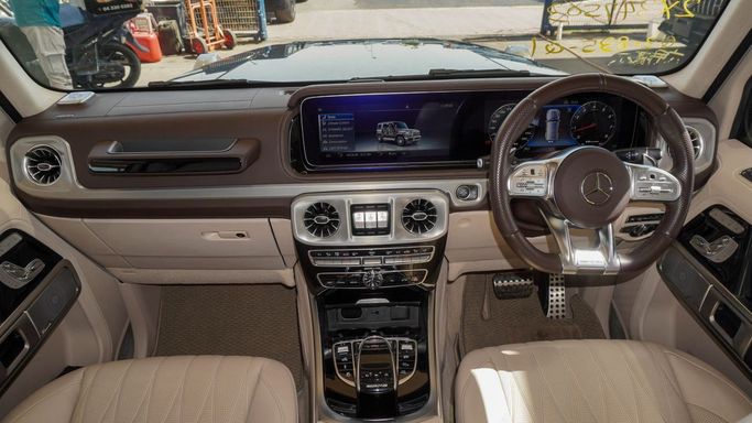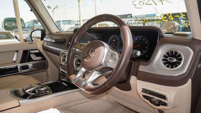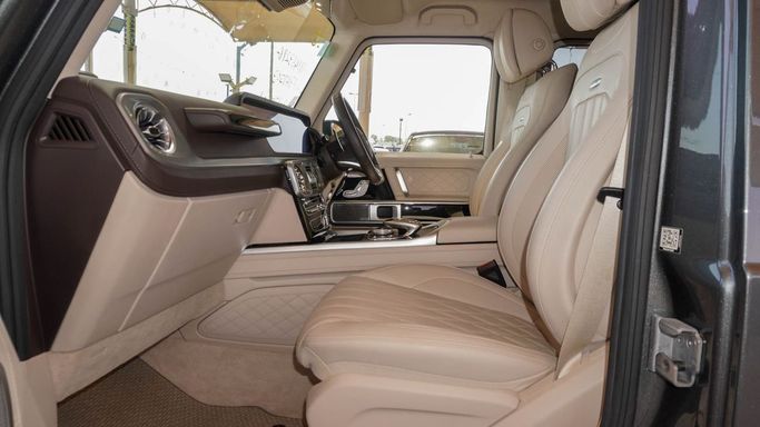 Mercedes-Benz G 63 AMG RHD. Grey 2020 model. This car has automatic transmission, 8 cylinders, 20″ wheels and beige interior. 31,274 km, Japanese specs.