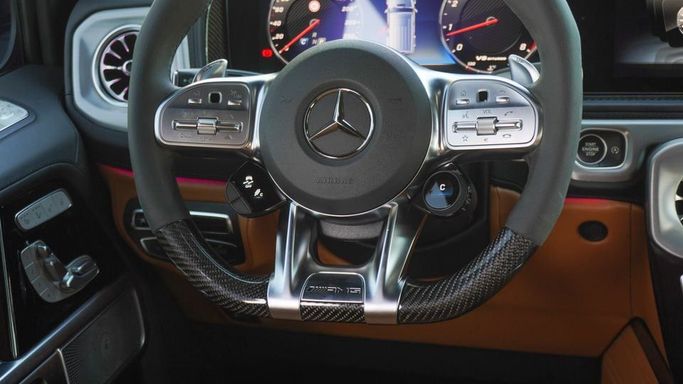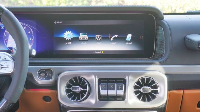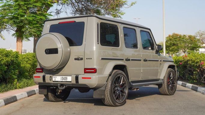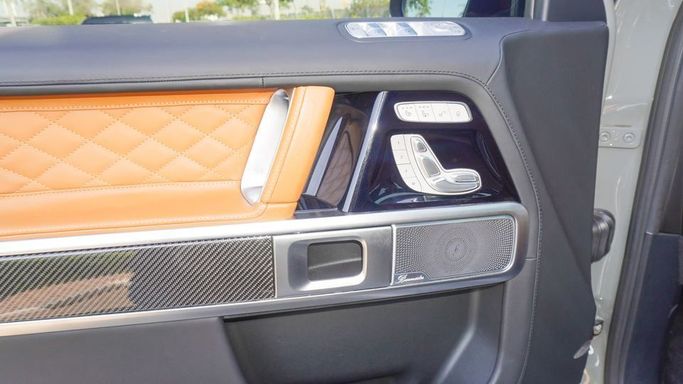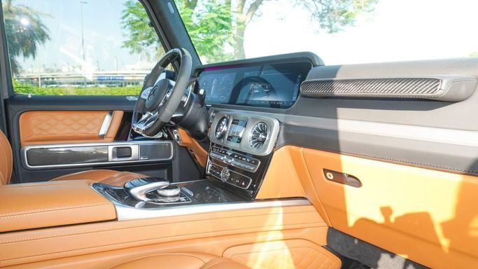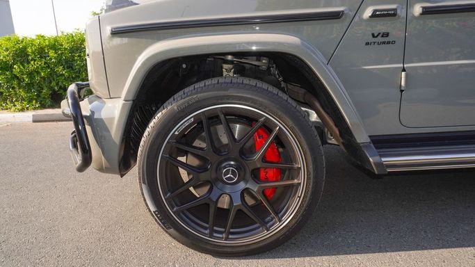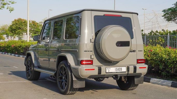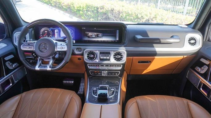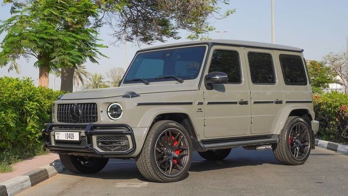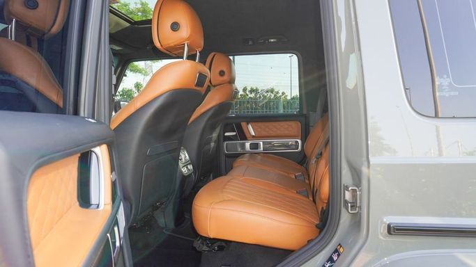 Pre-owned Mercedes-Benz G 63 AMG for sale in Dubai. Grey 2021 model, available at Najem Motors FZE. This car has automatic transmission, 8 cylinders, 21″ wheels and tan interior. 116,000 km, GCC specs.