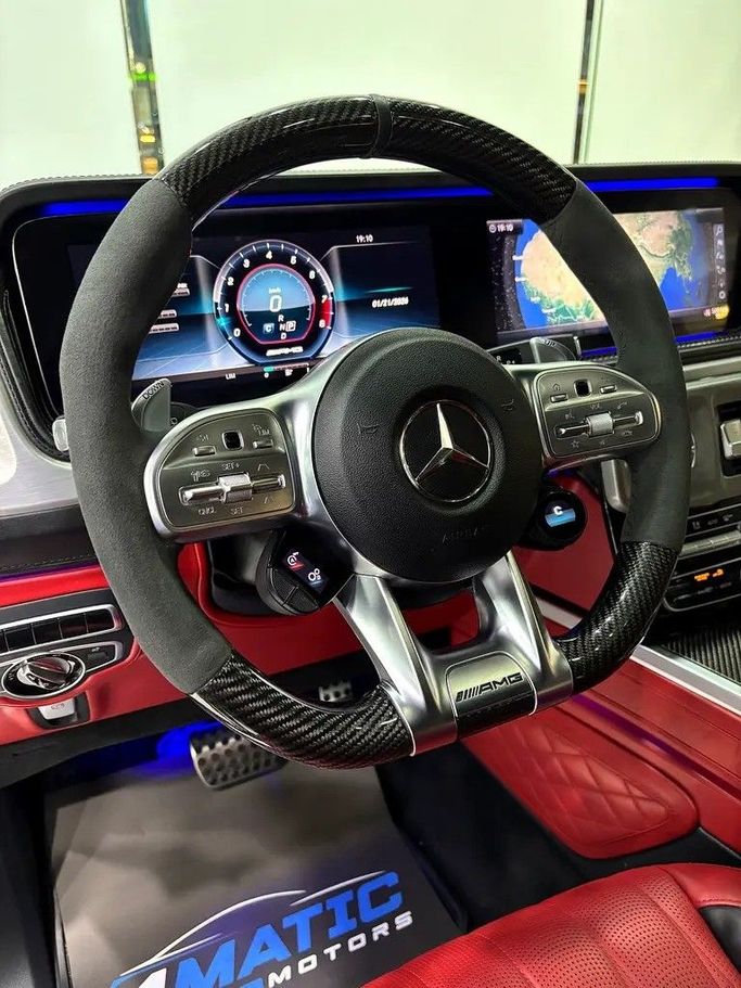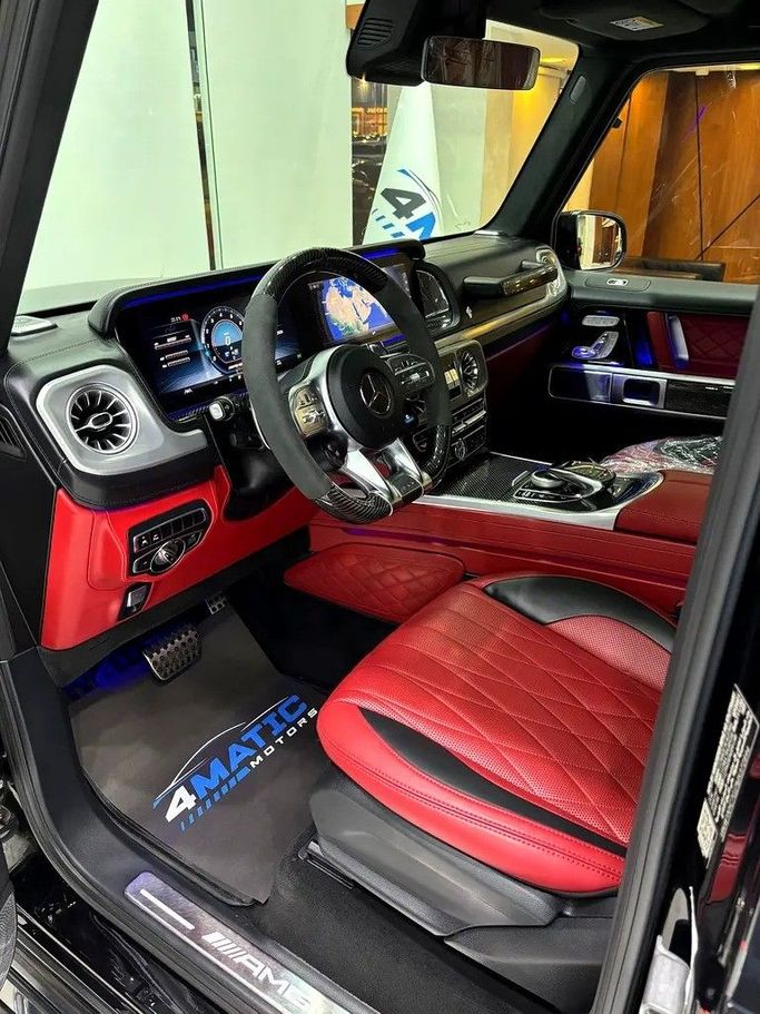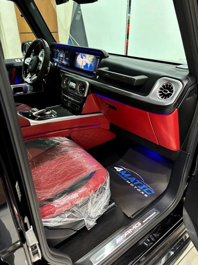 Mercedes-Benz G63 AMG MYD 2021 ODO 130,000 Km GCC Car Second owner from the agency Completely free of paint, accidents, and scratches, with a protective layer covering the entire exterior and interior made of PPF and nano-ceramic. Highly equipped with top-of-the-line specifications. It features the Dual Night Package. The 2021 Mercedes-Benz G63 AMG features a 4.0-liter twin-turbo V8 engine producing 577 horsepower, an automatic transmission, and all-wheel drive. It boasts a luxurious interior with two 12.3-inch screens, a Burmester sound system, and advanced sa