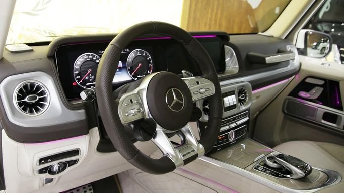 This 2021 Mercedes-Benz G-Class AMG II (W463) with the Brabus 800 upgrade merges the G-Class's distinctive silhouette with serious performance. Painted in white, the SUV houses a Brabus 800-tuned 4.0-litre petrol V8 that produces 800 horsepower, delivering brisk acceleration while preserving the model’s iconic torque and all-terrain poise. All-wheel drive and an automatic transmission keep traction and control stable across conditions, whether navigating city streets or challenging roads. Inside, the cabin elevates comfort with high-quality materials and modern technology,
