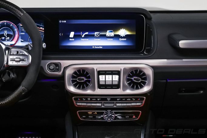 This new 2022 Mercedes-Benz G-Class AMG, II generation (W463), is a five-door SUV finished in black and tailored to GCC specifications. The 585-horsepower 4.0-litre petrol engine, derived from the 63 4x4 Squared variant, teams with all-wheel drive and an automatic transmission to deliver immediate, confident performance on and off the road. The 4x4 Squared lineage adds enhanced ground clearance and a more capable stance without compromising the luxury and refinement you expect from a Mercedes-Benz interior. Inside, the cabin combines high-quality materials, supportive seati