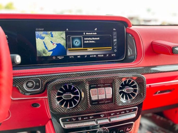 2022 Mercedes Benz G63 With Brabus 800 Kit 12,000 Kms Driven Personal Used Car Full Carbon Fiber Package Starlight Roof Burmester Sound System 24" Platinum Edition Monoblock Forged Wheels Original Vredestein '25 Tires Upgraded Exhaust Red Brabus Interior with Brabus Pillows