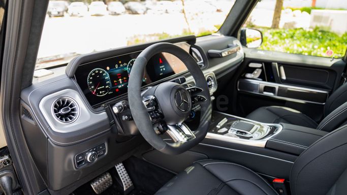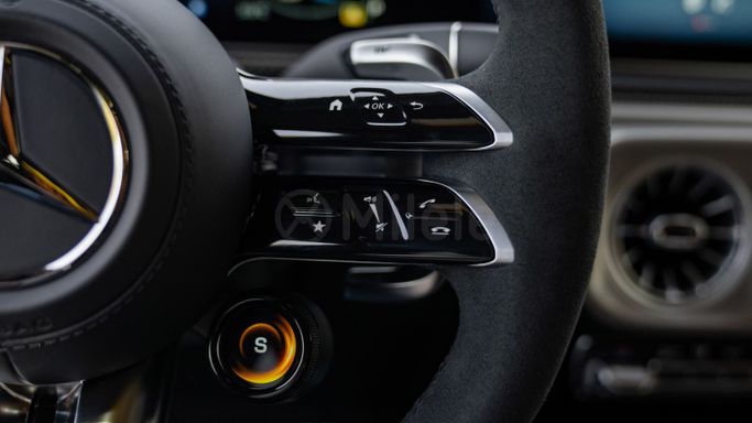 Introducing the all-new 2025 Mercedes-Benz G-Class AMG, a masterpiece of engineering and design that redefines luxury SUVs. With its aggressive stance and elegant silhouette, this five-door powerhouse boasts an impressive 585 horsepower from a thrilling 4.0-liter AMG V8 engine, ensuring exhilarating performance both on and off the road. Its sophisticated all-wheel drive system provides unparalleled grip and stability, making every journey a seamless experience in any terrain. The G-Class AMG is equipped with luxurious leather upholstery, advanced ambient lighting, and cutt