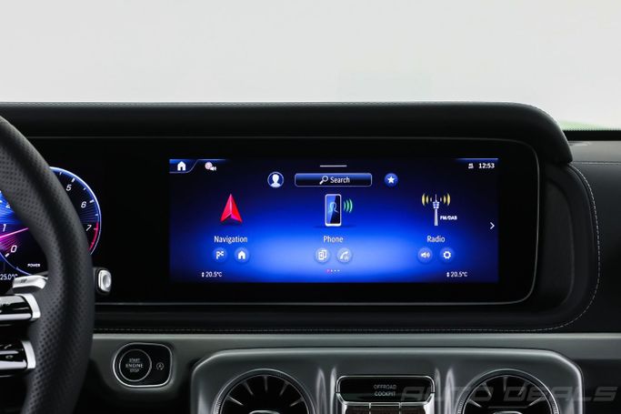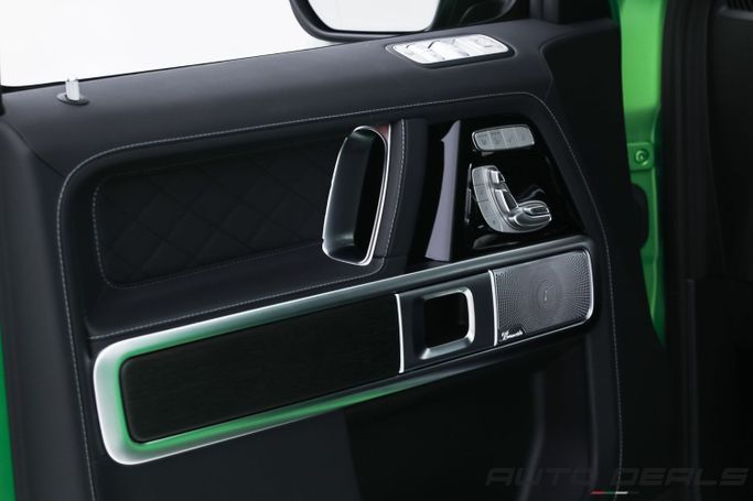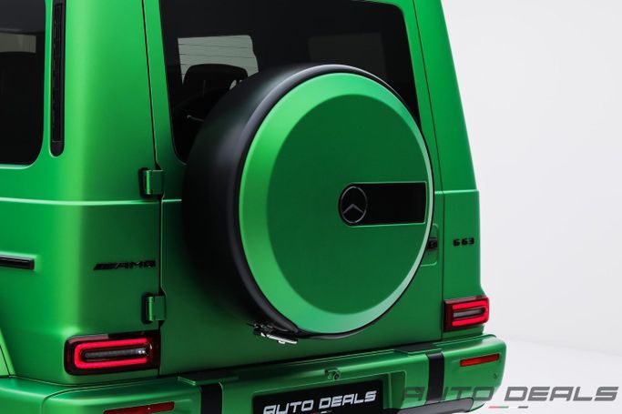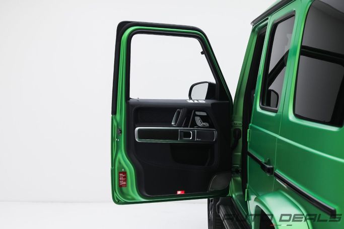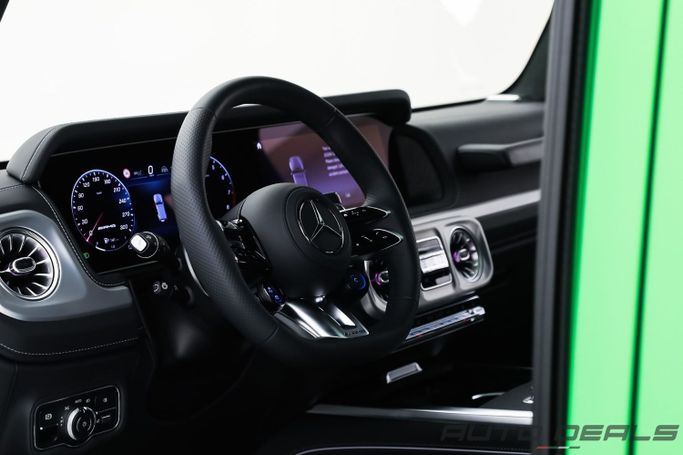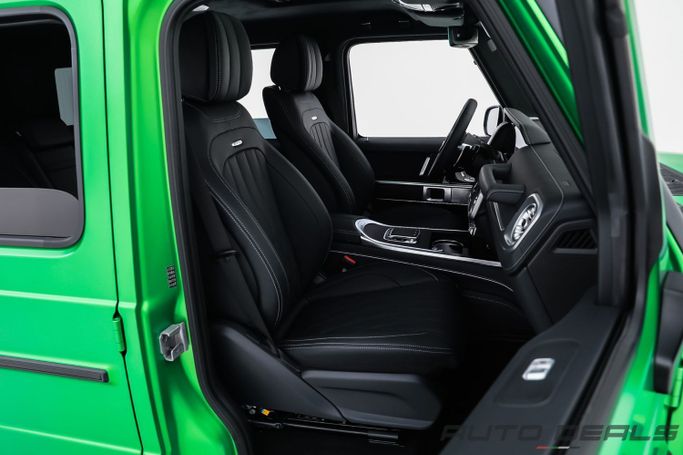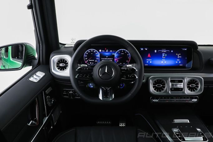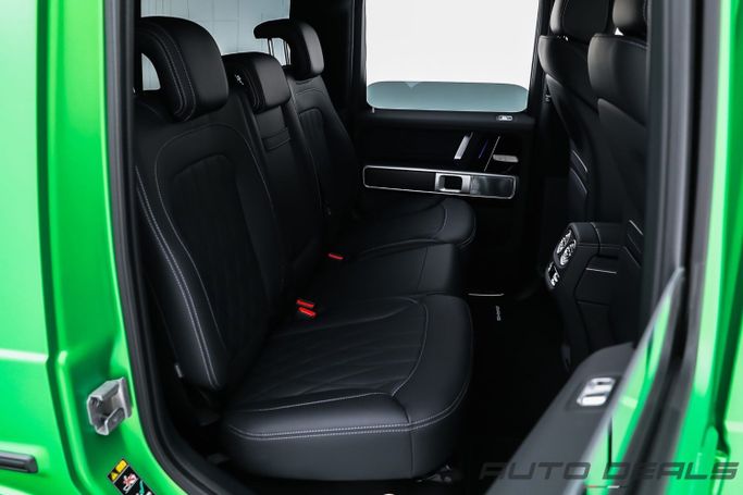 New 2025 Mercedes Benz G 63 AMG, A22 AMG ACTIVE RIDE CONTROL, Gen II (W465) Facelift, is a 5-door SUV that blends rugged presence with modern refinement. It carries the base 63 AMG lineage and a 4.0-liter V8 biturbo petrol engine delivering 585 horsepower, paired with an automatic transmission and permanent all-wheel drive for confident acceleration and steady traction in varied conditions. The European-spec model wears a deep green exterior that emphasizes the updated styling and the iconic G-Class silhouette, while the interior combines premium materials with refined comf