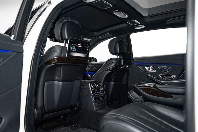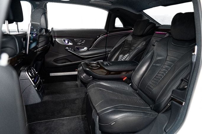 MERCEDES-MAYBACH S560 – ULTIMATE LUXURY SEDAN EXTERIOR FEATURES: - Elegant Diamond White Metallic Exterior - Iconic Maybach Chrome Grille with Emblem - 22-Inch Maybach Polished Alloy Wheels with Goodyear Eagle Tires - LED Intelligent Light System with Adaptive Highbeam Assist - Electric Soft-Close Doors INTERIOR & COMFORT: - Exclusive Nappa Leather Upholstery in Black - Reclining Executive Rear Seats with Massage, Leg Rests, Ventilation, and Memory - Burmester® High-End 3D Surround Sound System - Multi-Zone Climate Control with Rear Seat Individual Settings - Rear Enterta