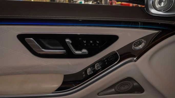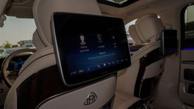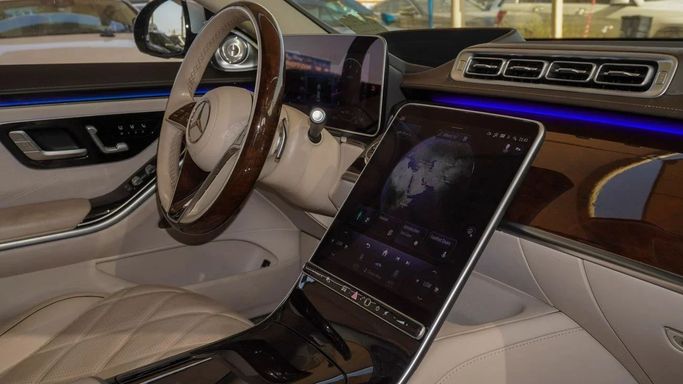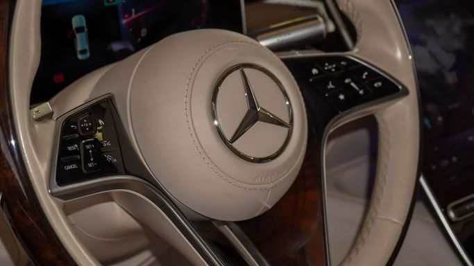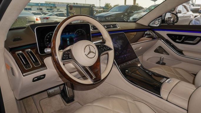 Mercedes Maybach S580 Maybach. Black 2022 model. This car has automatic transmission, a 8 cylinder engine, 21″ wheels and beige interior. 37,300 km, Japanese specs.