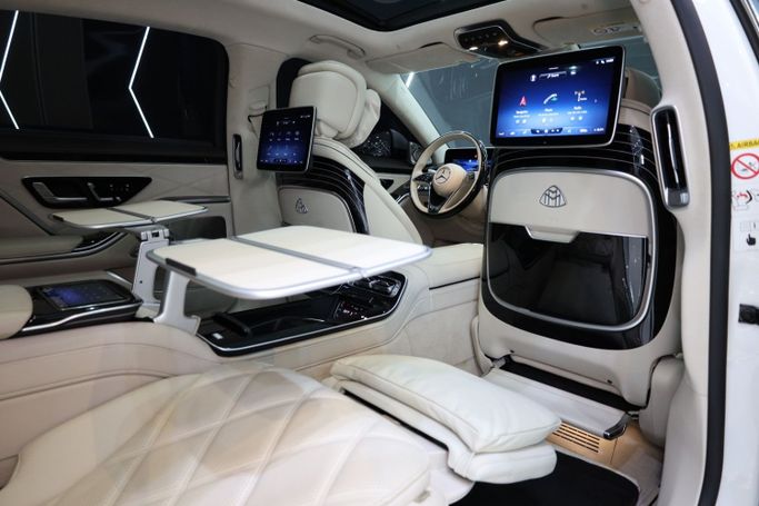 Mercedes-Benz S680 Maybach GCC Specifications Agency Warranty Until 26/01/2028 Panoramic Roof Burmester Sound System Head-Up Display Blind Spot Assist DYNAMIC SELECT Rear-Seat Entertainment Display Rear-Seat Folding Tables Rear Individual Seats Ventilated and Massage Seats Ambient Lighting Wireless Charging Tray Rear Electric Sunshades 360-Degree Camera 21-Inch Wheels