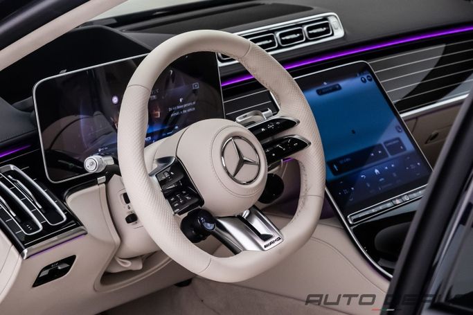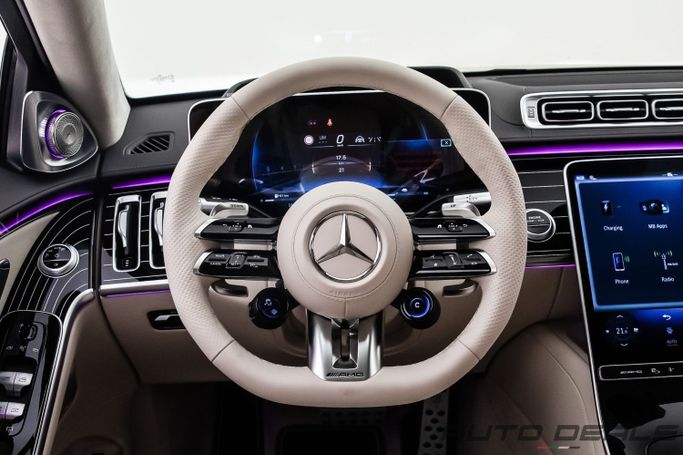 2025 Mercedes Benz S 63 AMG 930 Brabus Long Wheel Base | Brand New | Brabus Certificate – Based on S 63 AMG E Performance – Nautical Blue Metallic Exterior Color New 2025 Mercedes-Benz S-Class AMG IV (W223) in a rich blue, combines luxury and performance in the 63e AMG Long hybrid. The 4.0-liter twin-turbo V8 works with an electric motor to deliver a combined 802 hp, routed through a smooth automatic transmission and all-wheel drive for seamless acceleration and confident traction. The long wheelbase emphasizes cabin comfort with generous rear-seat space, while AMG tuning b