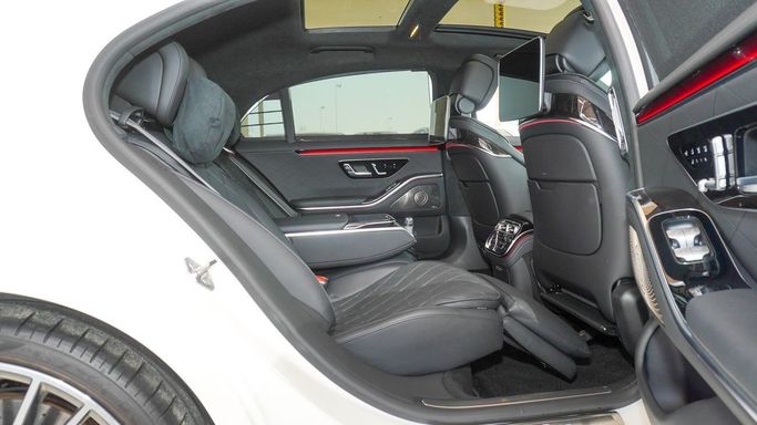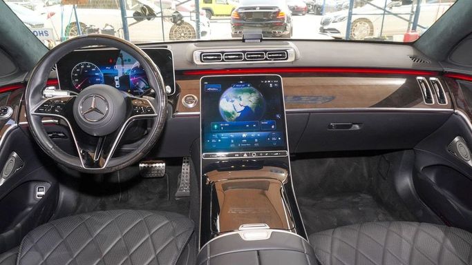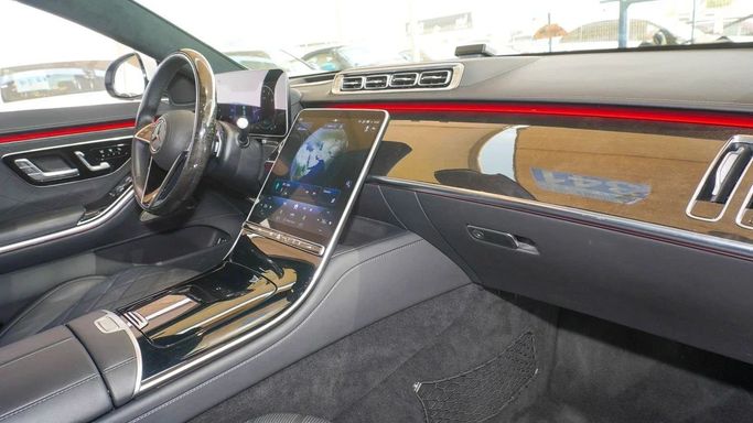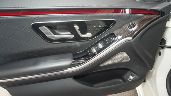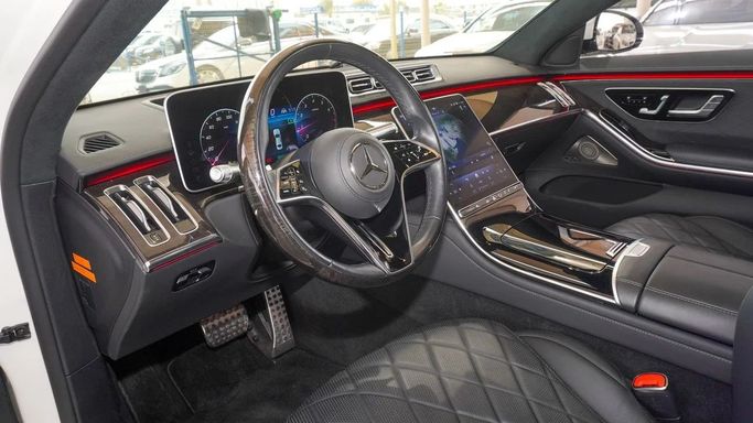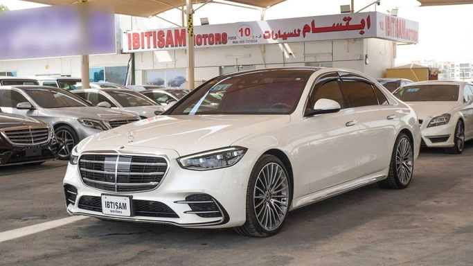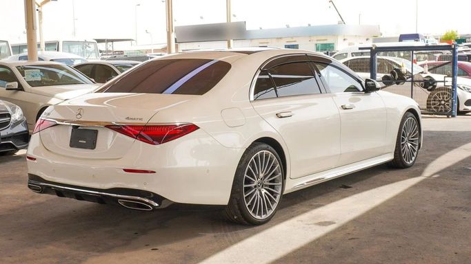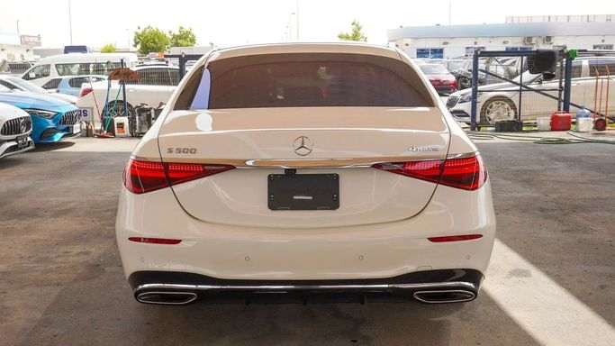 Mercedes-Benz S 500 4MATIC. White 2021 model. This car has automatic transmission, 6 cylinders, 21″ wheels and black interior. 22,000 km, Japanese specs.