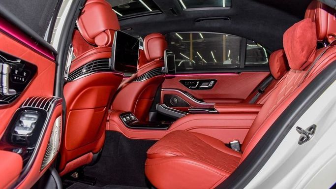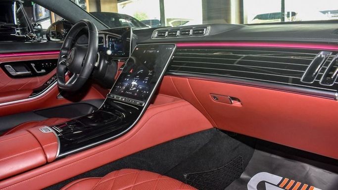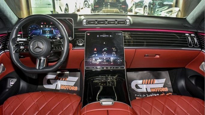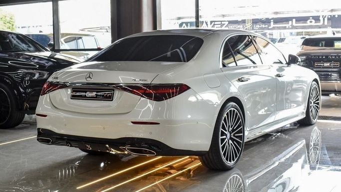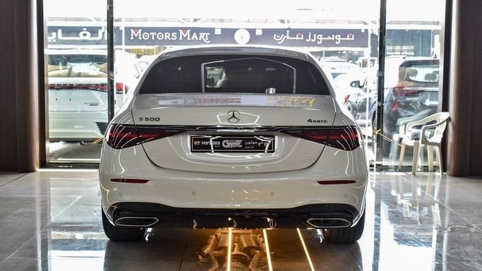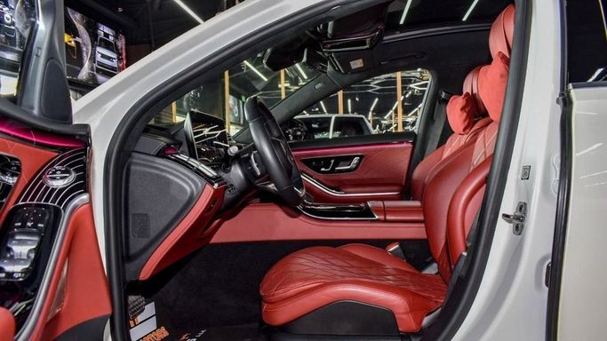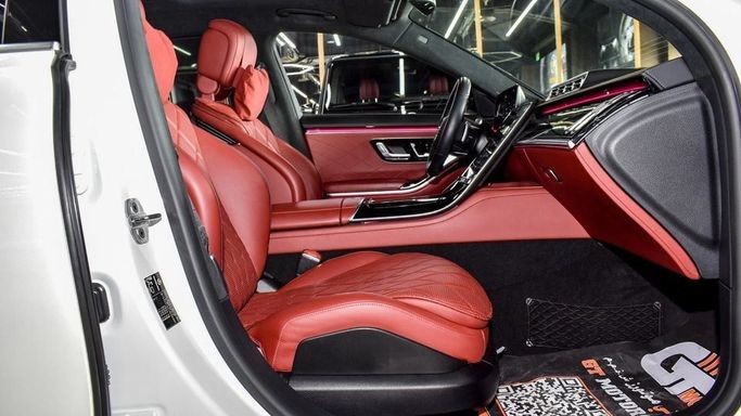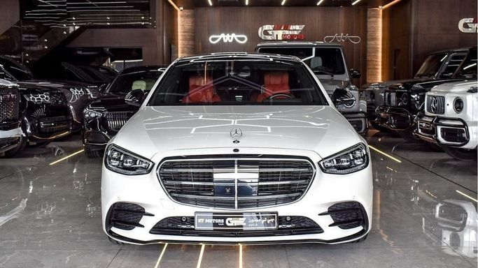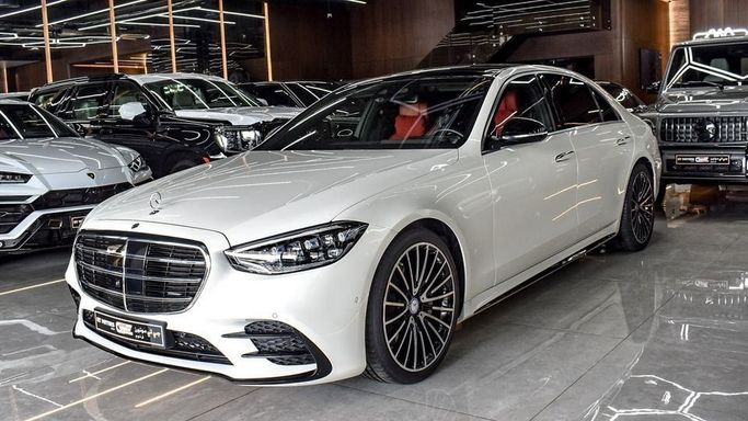Used Mercedes-Benz S 500 4Matic for sale in Dubai. White 2022 model, available at Najem Motors FZE. This car has automatic transmission, a 6 cylinder engine, 21″ wheels and red interior. 18,000 km, European specs.