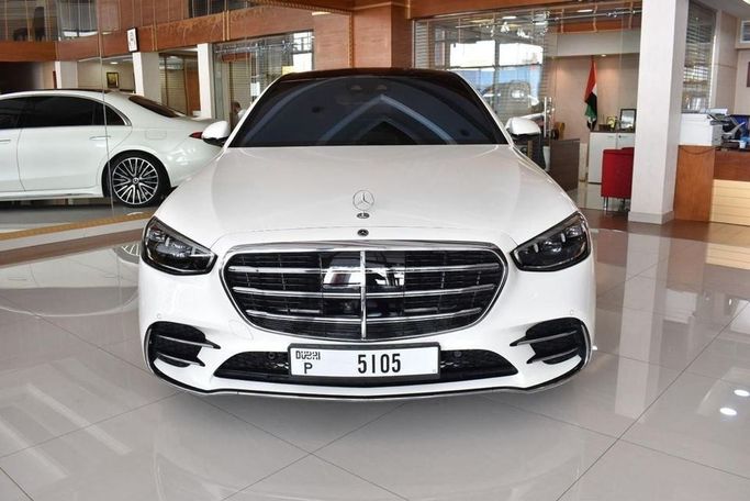 Mercedes-Benz S500 4MATIC –(GCC Specs) Engine: 3.0L Turbocharged Inline-6 Horsepower: 429 HP + 22 HP (EQ Boost) Torque: 520 Nm Acceleration: 0–100 km/h in 4.9 sec Transmission: 9G-Tronic Automatic (9-speed) Drivetrain: 4MATIC (Intelligent AWD) Exterior Color: Pearl White with Black Panoramic Roof Interior: Exclusive Red Leather (Designo) with premium trims