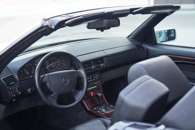 Key features of this SL320 include: -3.2L M104 inline-6 engine — known for smooth power and reliability -Only 29,000 km, meticulously maintained and preserved -Classic silver exterior with black leather interior -Comes with both the removable hard top and power-operated soft top Features include: -Automatic roll bar -Electric memory seats -Adjustable damping -Advanced crash protection -1996 model benefits from updated transmission and electronics Combining usability, comfort, and classic Mercedes design, this SL320 is an excellent choice for collectors or thos