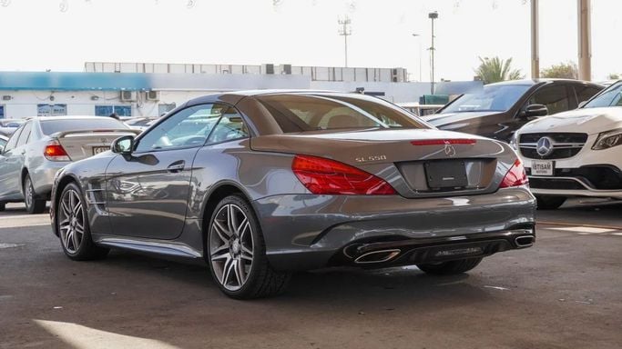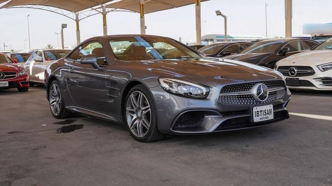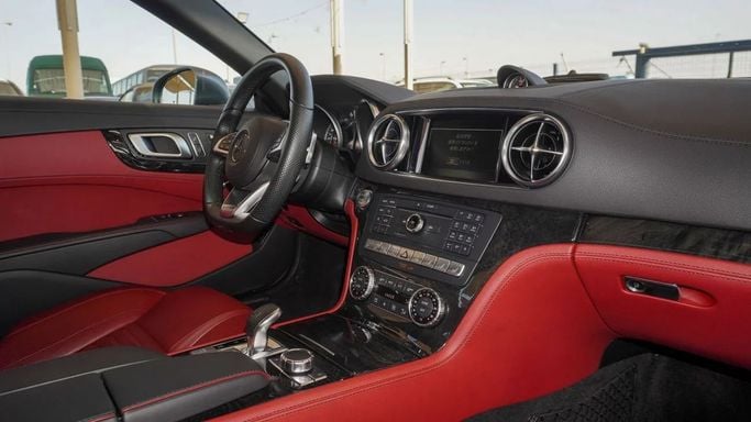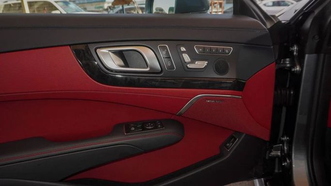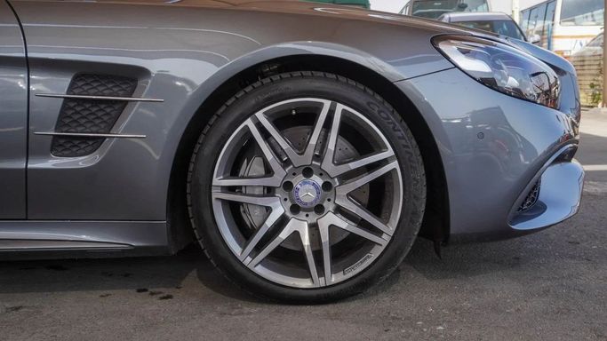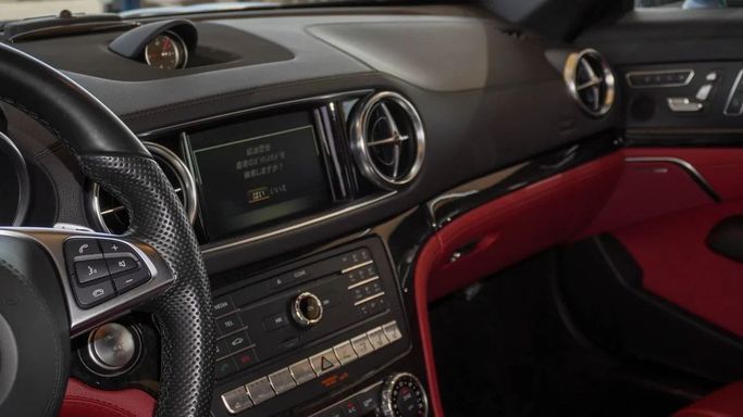 Mercedes-Benz SL 550. 8 cylinder engine, grey exterior and automatic transmission. Comes with 19″ wheels and red interior. 18,199 kilometers on the odometer, Japanese specs.