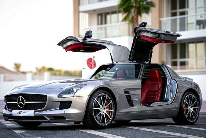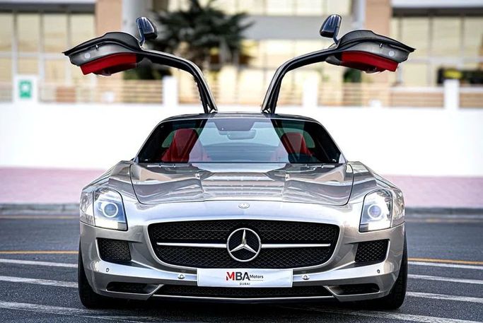 2012 Mercedes-Benz SLS - 22,000 km - Low mileage - Butterfly doors - Gray exterior with red interior - Rare vehicle - Carbon fiber interior and ceramic brakes - Never registered in the UAE Located in Dubai. For more information, please call.