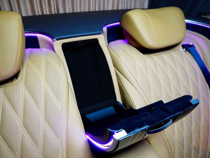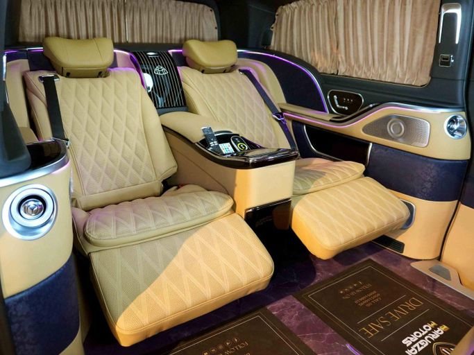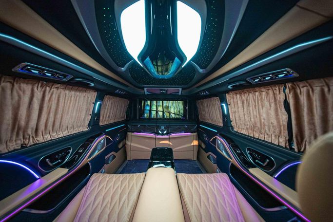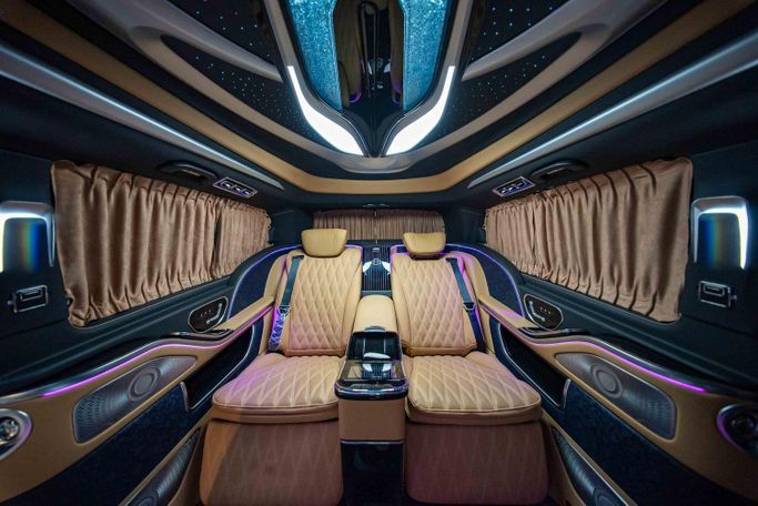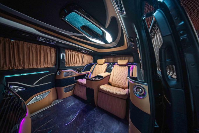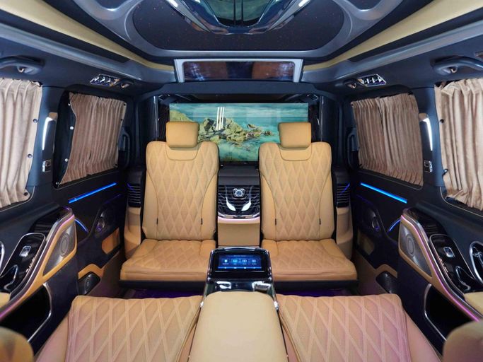 Vehicle Model & Year: Mercedes - Benz V-Class 2023 Mileage: 3804 KM Warranty Information: 2 Years Full Vehicle Warranty & 2 Years Service contract Regional Specification: Other Vehicle Luxury Highlights: - High Roof Design – Provides extra headroom, unlike standard V-Class models - Hidden Storage Table – Securely store personal items - Maybach Exterior Kit with two tone paint. - Custom Leather Roof – Features Rolls-Royce-style star lights and ambient roof lighting - Extended Wheelbase – Maximizes cabin space for unmatched comfort - Folding Tables for Vip C