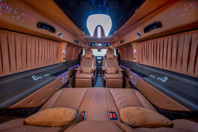 Vehicle Model & Year: 2025 Limgene VIP Mercedes-Benz Prestige Edition Mileage: 0 KM Warranty & Service Coverage • 2 Year International Agency Warranty • 2 Year or 60,000 Km Interior Warranty Regional Specification: GCC Luxury Highlights Built into this Masterpiece - 2 fully reclining VIP Captain Seats in Nappa leather with touchpad controls (massage, ventilation, heating, lumbar & headrest adjustment) - Built-in fridge - Touchscreen tablet to control vehicle features - USB Type-C ports & 220V power outlet - Wireless mouse with keyboard - Soundproof & heat-insulated