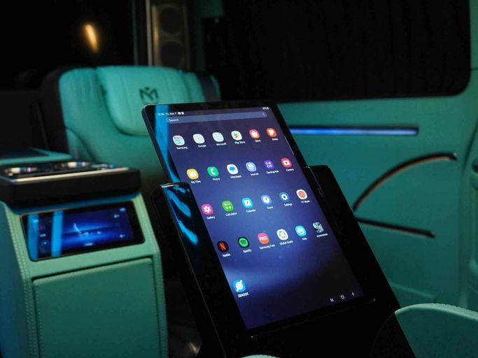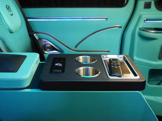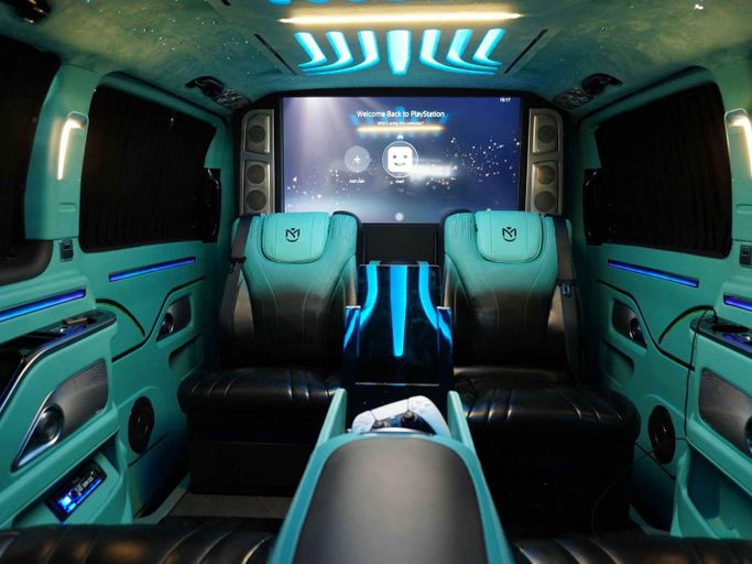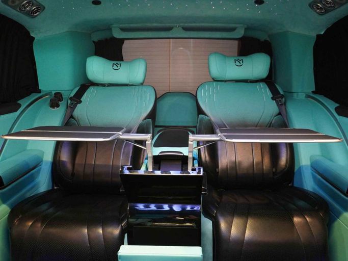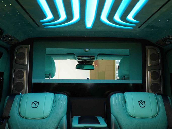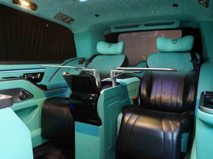 This van is manufactured & designed by Michael Cinco Auto Artistry. Available for order —————— This Mercedes-Benz V300 VIP has the following features: - Exclusive design by Michael Cinco - Swarovski roof top - 2 VIP captain seats with massage, ventilation and heating - 2 semi VIP seats massage, ventilation and heating - Custom roof with kantara, star lights and ambient lights - Long wheel base for extra space - Tables in the captain seats for passengers to use their laptop or have food - TV to watch YouTube or Netflix - 2 built-in fridges for drinks - Custom flooring for gr