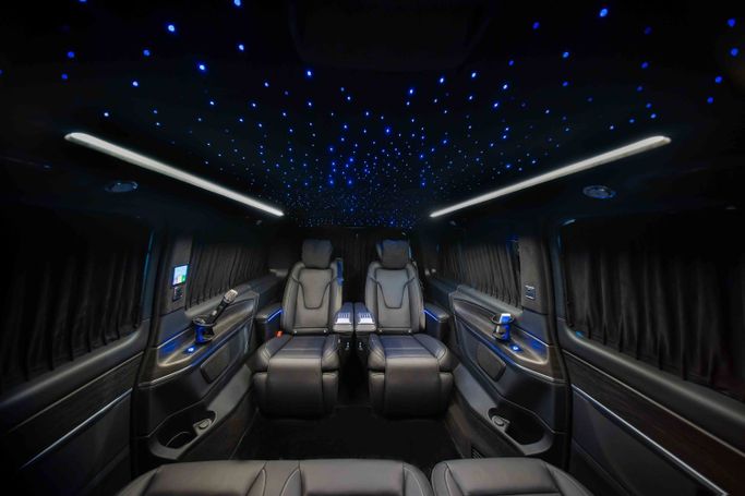 Vehicle Model & Year: 2026 Barugzai VIP Mercedes – Benz V300 Mileage: 0 KM Warranty Information: 2 Year Mercedes-Benz Agency Warranty for the Vehicle 2 Year Barugzai Interior Warranty Regional Specification: GCC Luxury Highlights Built into this Masterpiece • 2 fully reclinable VIP captain seats with massage, ventilation, and heating in Nappa leather • Alcantara roof with starlights, shooting stars, and warm ambient lighting • Long wheelbase for maximum comfort and extra space • 18-inch alloy wheels for a stylish exterior look • Alcantara luxury curtains