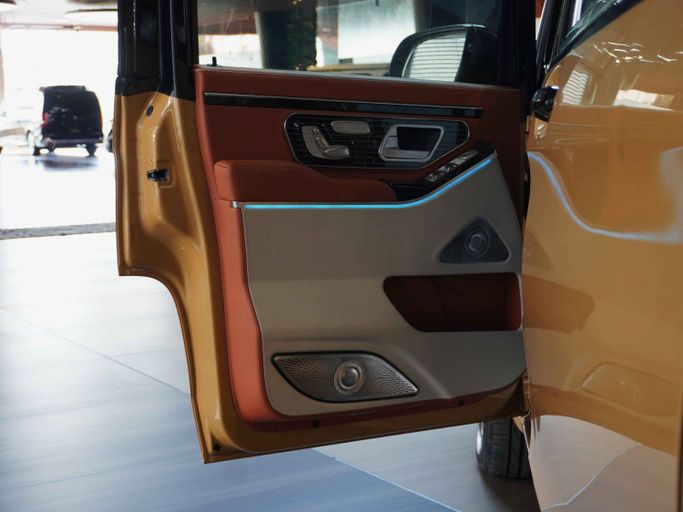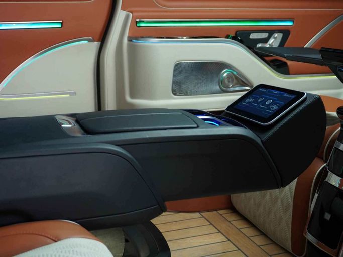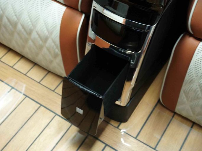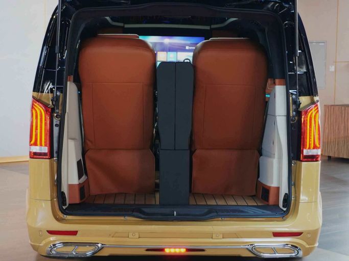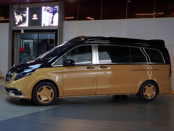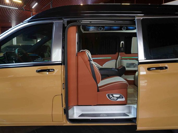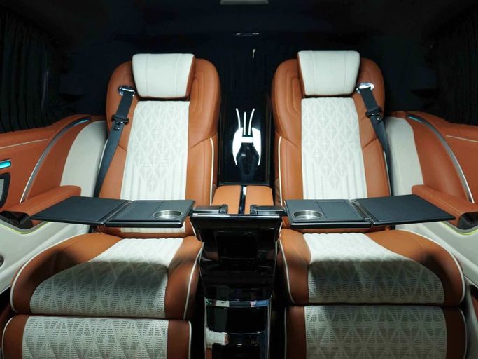 This Mercedes-Benz Vito High Roof VIP has the following features: - High-Roof Allowing Extra Head Space unlike other V-Classes in the Market - 4 VIP Seats with Massage, Ventilation and Heating - Center consoles between both set of chairs - Storage Boxes to Store Personal Belongings - Maybach Kit with Double Tone body - Custom Roof Interior with Leather, Rolls Royce Star Lights and Roof Lights for Great Ambiance - Long Wheel Base for Extra Space - Tables for passengers to use their Laptop or have Food - TV to watch Youtube or Netflix - 2 Built-in Fridges for Drinks - Custom