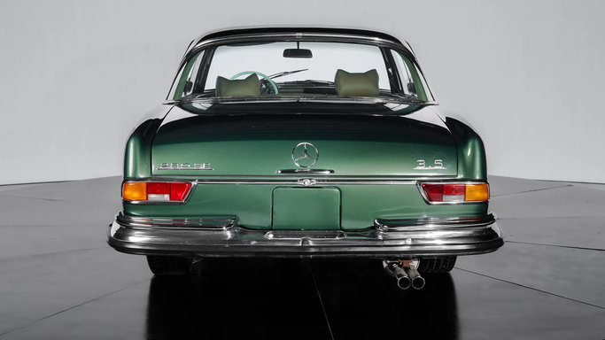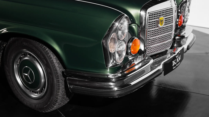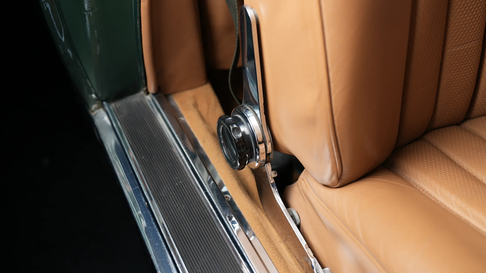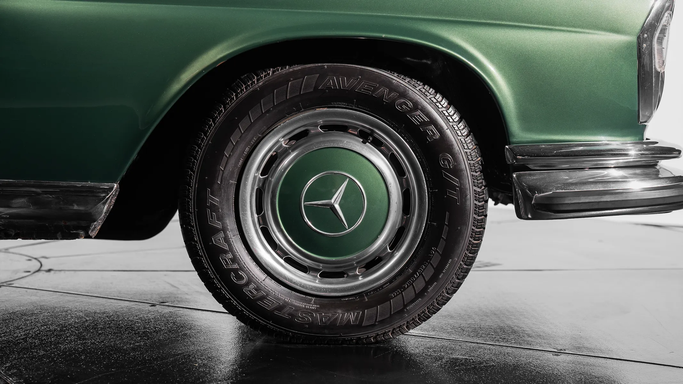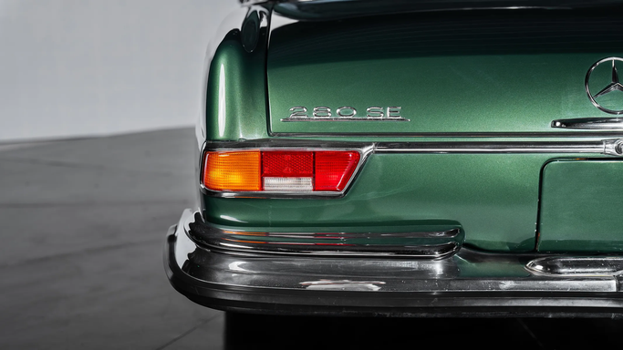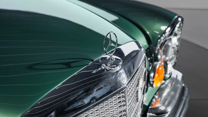The interior was meticulously crafted, featuring wood veneer trim, hand-stitched leather or velour upholstery, and a refined dashboard layout. One notable feature was the hydropneumatic compensating spring in the rear suspension, ensuring a level ride regardless of load—an early precursor to modern adaptive suspensions. The 280 SE also introduced safety innovations, including crumple zones, padded dashboards, and retractable seat belts, reinforcing Mercedes-Benz’s commitment to passenger protection. Year: 1970 Color: Green Transmission: 4-Speed Manual Cylinder: Inline 6 Int
