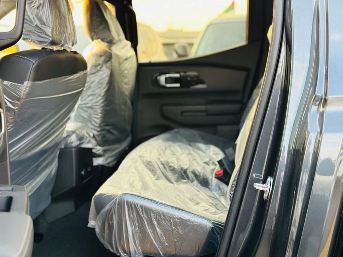 New 2026 Mitsubishi L200 VI double-cab pickup in grey, designed for dependable work and everyday use. It runs a 2.4-liter diesel delivering 150 hp, paired with an automatic transmission and permanent all-wheel drive for stable performance on varied terrain. The GCC-spec model is tailored for warm climates, while the cabin combines practicality with comfort: supportive seats, durable materials, and smart storage that suit daily trips and longer journeys. The double-cab layout provides seating for four with a versatile cargo bed ready for tools or gear, and the ride quality b