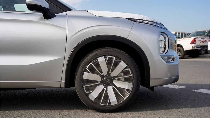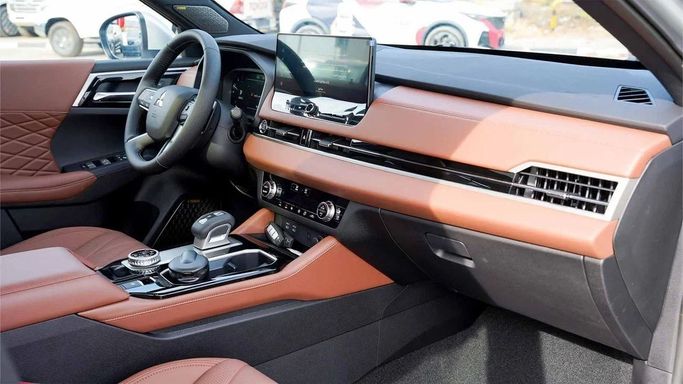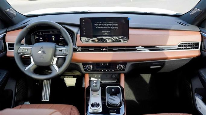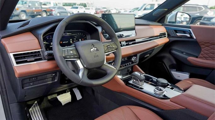 New 2026 Mitsubishi Outlander IV in silver, a five-door SUV designed for versatility and everyday practicality. Under the hood sits a 2.5-liter petrol engine producing 184 hp, paired with a smooth continuously variable transmission, and all-wheel drive that adapts to varying road surfaces. The GCC-spec configuration ensures performance and comfort aligned with regional expectations, while the cabin focuses on space, refinement, and user-friendly technology. Exterior lines balance a confident stance with understated style, and the interior offers comfortable seating and thou