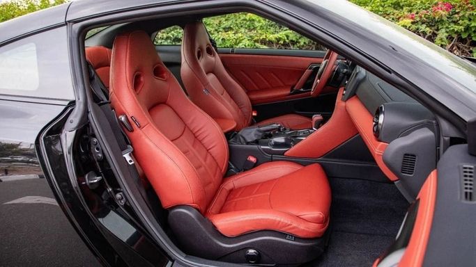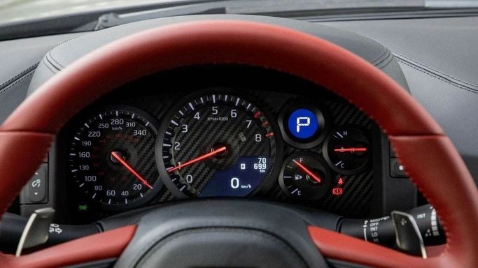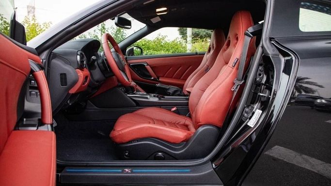 2024 Nissan GT-R Final Edition Canadian specs 3.8L twin-turbocharged V6 engine producing 565 horsepower and 633 Nm of torque. The car comes with a 6-speed automatic transmission and all-wheel drive for superior handling and stability. The Premium Package includes high-end features such as Apple CarPlay, Android Auto, cruise control, and climate control. Safety is also a priority, with 6 airbags, ABS, and front park assist.