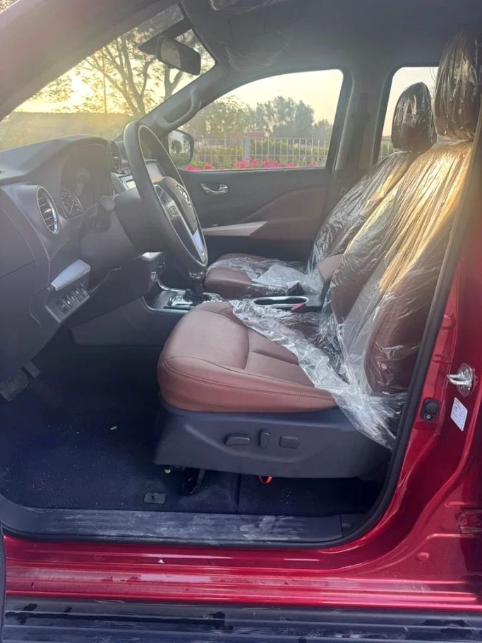New 2024 Nissan Navara Frontier IV (D23) double cab pickup in a bold red finish offers a practical blend of everyday usability and capable performance. It’s equipped with a 2.5-liter diesel engine delivering 163 horsepower, paired with an automatic transmission and all-wheel drive to ensure confident handling across diverse conditions. The Chinese market specification informs its equipment and certification, while the five-seat cabin emphasizes comfort and a straightforward, driver-focused layout. The rugged, contemporary design is complemented by a generous cargo bed, maki