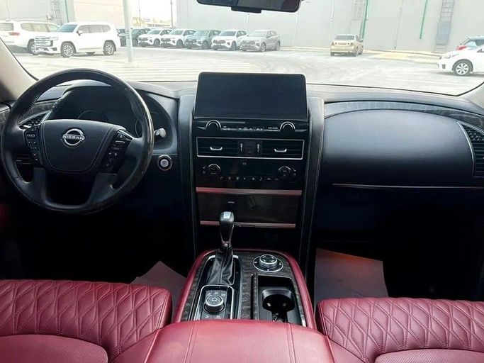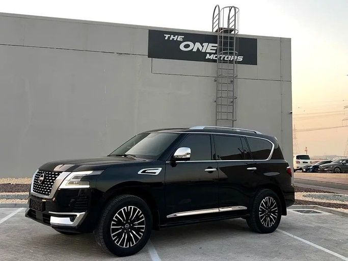 This 2022 Nissan Patrol SE Platinum City (Y62) Facelift 2 is a GCC-spec 5-door SUV finished in black. It has a single prior owner and 112,000 kilometers on the clock. Under the hood sits a 4.0-liter petrol V6 producing 275 horsepower, paired with a smooth automatic transmission and all-wheel drive, delivering steady performance in a variety of conditions. Across its size and setup, the Patrol aims to balance road presence with comfortable ride quality. The 4.0-liter V6 provides ample mid-range torque for confident highway merging, while the automatic gearbox keeps shifts d