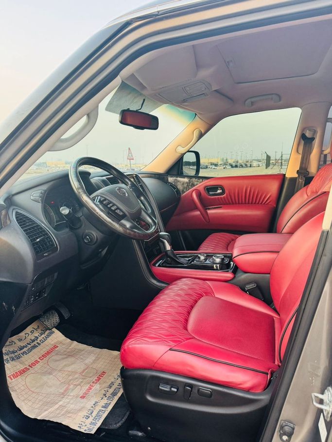 Nissan Patrol Color: Titanium Trim: Platinum Specifications: - Automatic transmission - Four-wheel drive system - Sunroof - Touchscreen - Luxury sound system - 360-degree cameras - Full sensors - Keyless entry and fingerprint operation - Burgundy seats - Front and rear air conditioning control - Cruise control with full steering control - Rear screens - LED headlamps Model year: 2014 Mileage: 190,000 km Price: 59,000